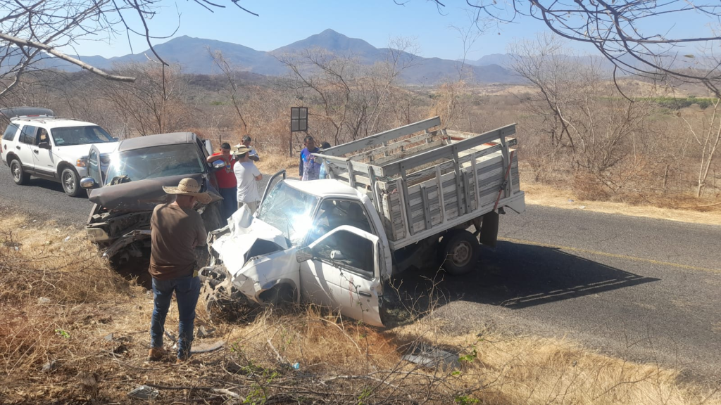 Huetamo, Mich.- Lunes 6 de abril de 2026.- Un aparatoso accidente vehicular registrado la mañana de este lunes sobre la carretera estatal Huetamo-Churumuco, a la altura de la comunidad de Santiago Conguripo en este municipio, dejó como saldo una mujer sin vida y cinco personas lesionadas, entre ellas un menor de edad.