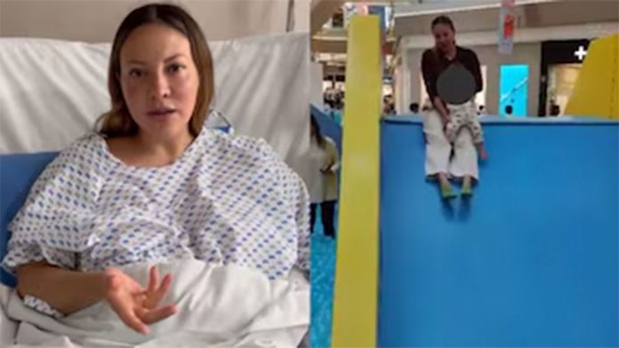 De acuerdo con los reportes, la afectada utilizó una resbaladilla junto a su hijo pequeño; sin embargo, al llegar al final del juego se lastimó, lo que derivó en una lesión de consideración. Tras lo ocurrido, la mujer ha exigido que el establecimiento asuma la responsabilidad correspondiente por el incidente.