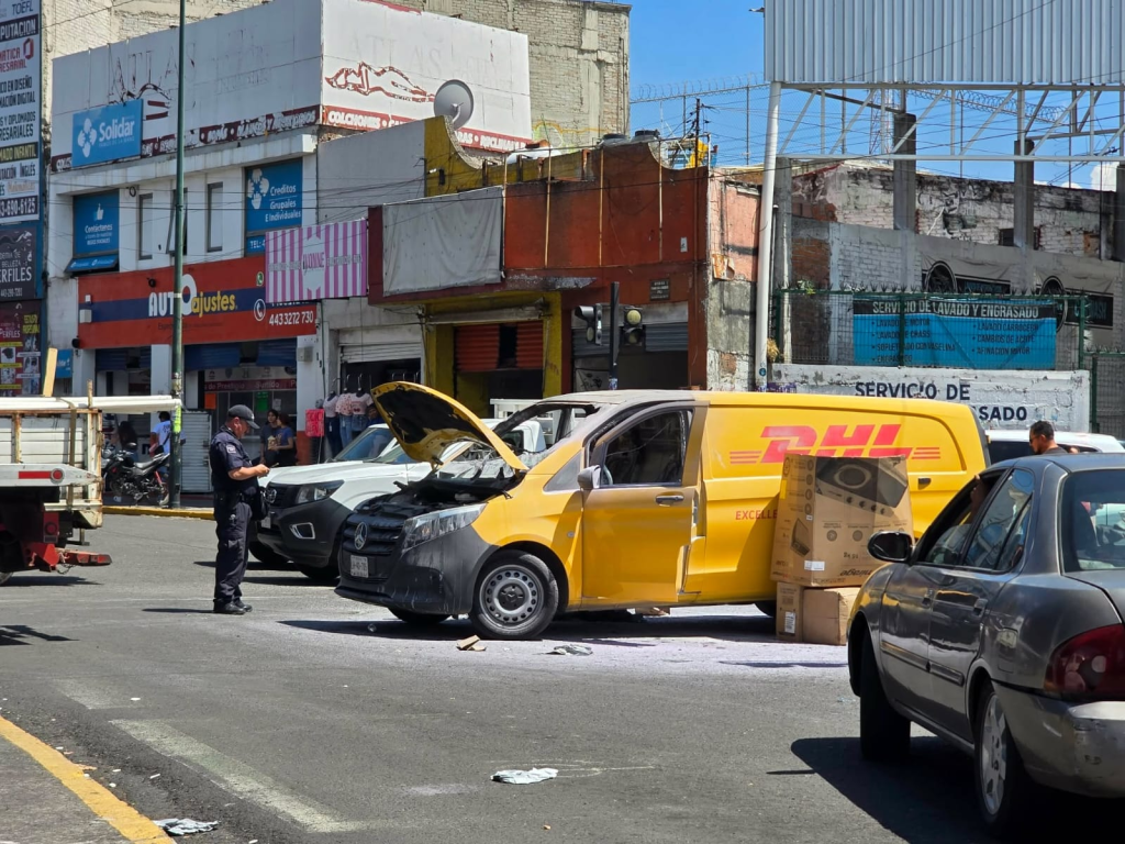 Tras la quema de una camioneta de la empresa de paquetería DHL, en el cruce de las avenidas Madero Poniente y Periodismo, el cargamento fue sacado y dejado en la banqueta, donde personas ajenas a los manifestantes de Arantepacua aprovecharon para robarse los paquetes, pese a la presencia policial.