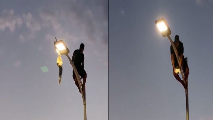 De acuerdo con testigos, el ave se encontraba enredada en la estructura, lo que le impedía liberarse por sí sola. Ante esta situación, el ciudadano no dudó en intervenir y, pese al riesgo, trepó el poste para auxiliarla.