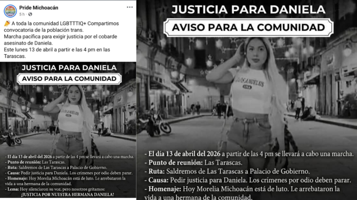El asesinato de Daniela, mujer trans localizada sin vida en el libramiento norte de Morelia, provocó indignación entre colectivos y activistas, quienes convocaron a una marcha para exigir justicia y castigo a los responsables.