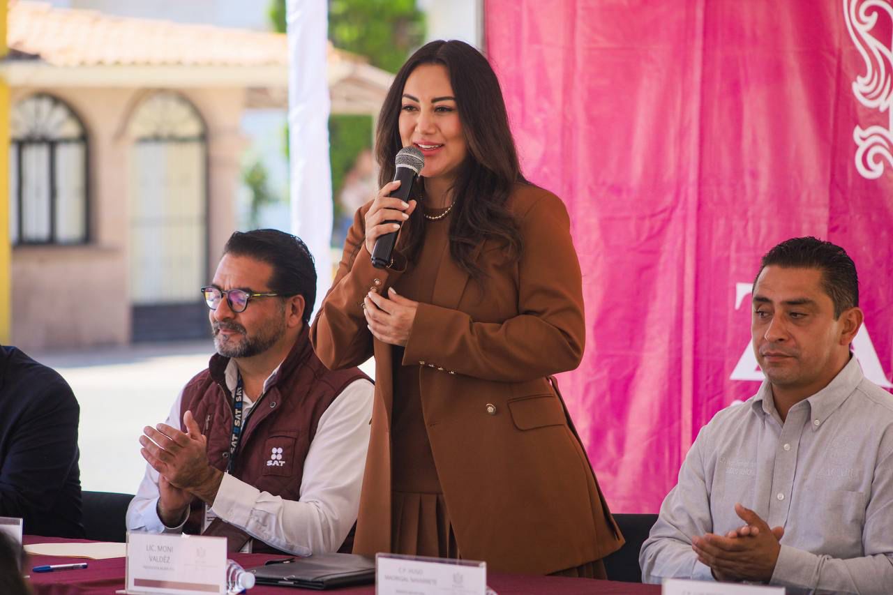 Zacapu, Michoacán, a 13 de abril del 2026.- del En un hecho histórico para el municipio, la presidenta municipal de Zacapu, Mónica Valdez Pulido, encabezó la inauguración de las nuevas oficinas del Servicio de Administración Tributaria (SAT), acercando por primera vez servicios fundamentales a las y los ciudadanos, así como a habitantes de municipios vecinos.
