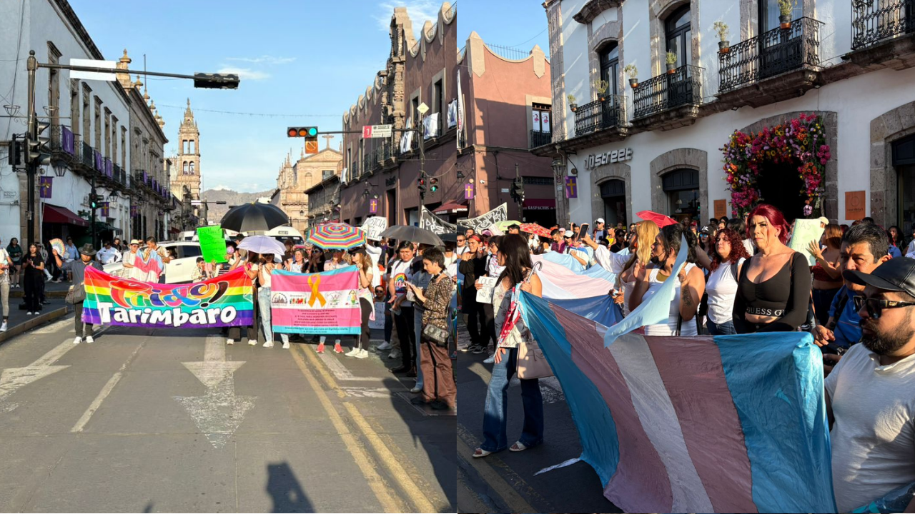 Integrantes de la comunidad LGBTTTIQ+ esta tarde realizan una marcha para exigir justicia en favor de Daniela, chica trans asesinada el pasado sábado en el norte de Morelia, sin que hasta el momento se haya tenido avances de las investigaciones.