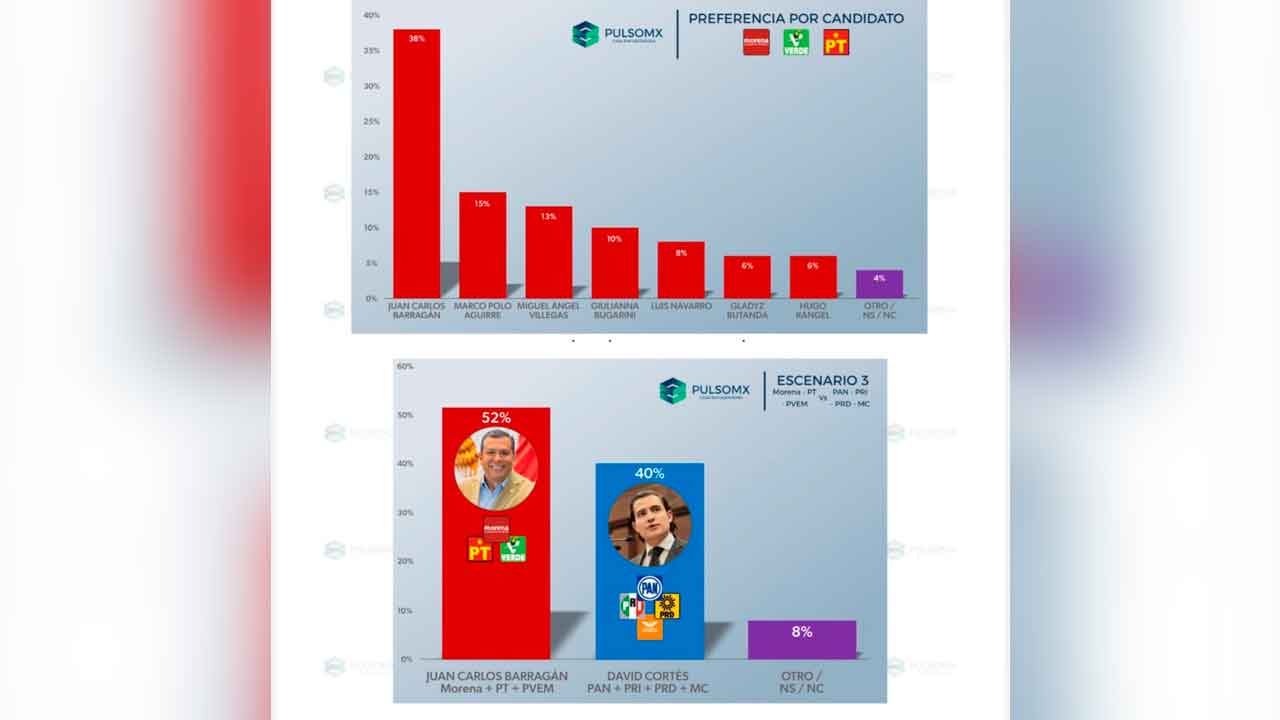 En la definición de candidatura dentro de Morena, Barragán ocupa el primer lugar con 38% de preferencia, superando con amplia ventaja a otros aspirantes del mismo partido.