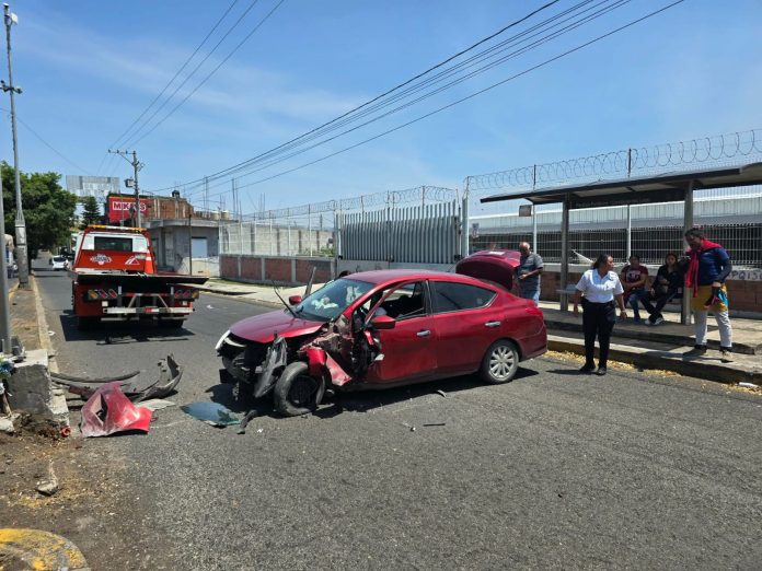 Se observó que la unidad siniestrada es de la marca Nissan Versa, color guinda, con placas PNJ562E, la cual terminó con daños en la parte frontal y lateral izquierda. De acuerdo con fuentes policiales, el conductor, la intentar hacer un cambio intempestivo de carril, perdió el control del auto y sucedió el percance.