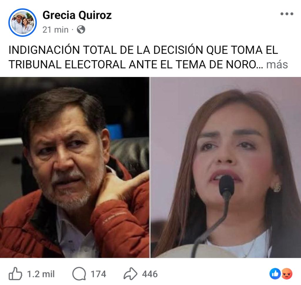 La presidenta municipal de Uruapan, Grecia Quiroz, denunció públicamente que el Tribunal Electoral del Estado de Michoacán (TEEM) se declaró incompetente para resolver el Procedimiento Especial Sancionador que promovió en contra del senador Gerardo Fernández Noroña por presunta violencia política de género.