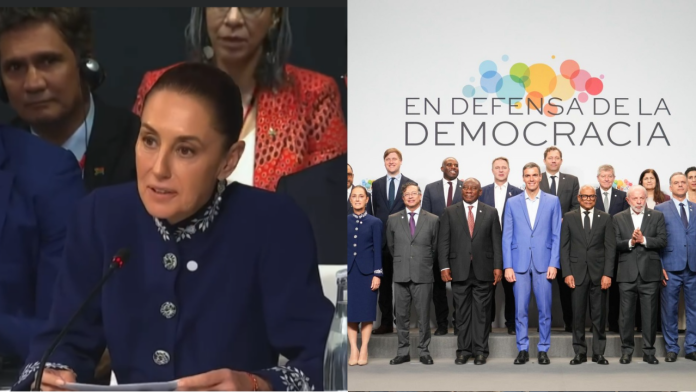 “Soy una mujer de paz y represento una nación que ama la libertad”, declaró Sheinbaum ante líderes progresistas del mundo, entre ellos el presidente español Pedro Sánchez y el brasileño Luiz Inácio Lula da Silva. La mandataria enfatizó que la democracia debe entenderse como la justicia social y el respeto a la autodeterminación, cuestionando cualquier concepto de libertad que implique represión.