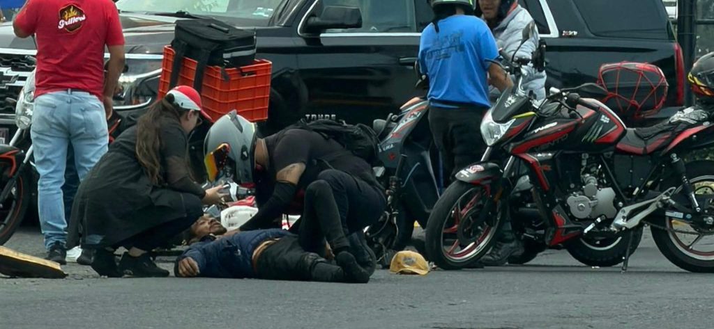 El hombre fue auxiliado por varias personas, así como por patrulleros y paramédicos.*Choque de motocicleta y camioneta en el Boulevard Juan Pablo II.