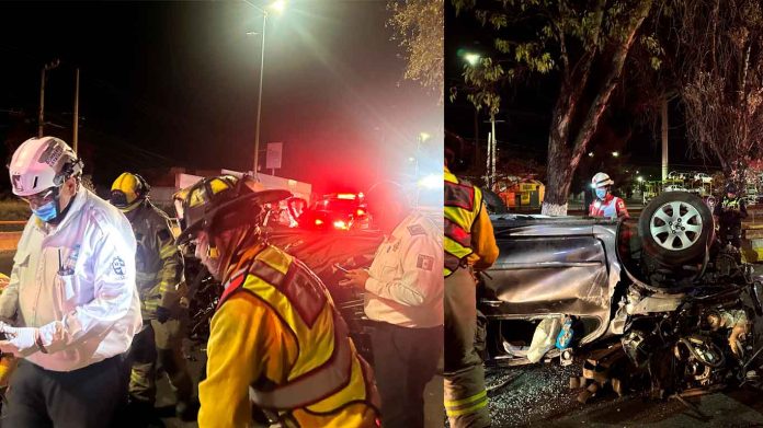 Morelia, Mich.- 18 de abril de 2026.-Durante la madrugada de este sábado, se registró un aparatoso accidente vehicular sobre Libramiento Norte de la ciudad de Morelia con saldo de un masculino lesionado y cuantiosos daños materiales.