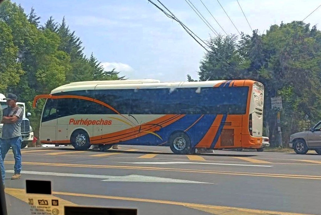 Por ello, al filo de las 15:00 horas, decenas de habitantes se apostaron en la desviación a Los Reyes donde se apoderaron de un tráiler y un autobús, los cuales atravesaron sobre la vialidad, generando un congestionamiento vial en la zona y la molestia de decenas de automovilistas.
