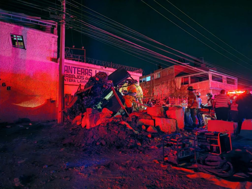 El vehículo involucrado es un Volkswagen Jetta, con placas PLF572D, el cual terminó destrozado y sobre unos bloques de cantera ubicados afuera del negocio denominado “Canteras León”.