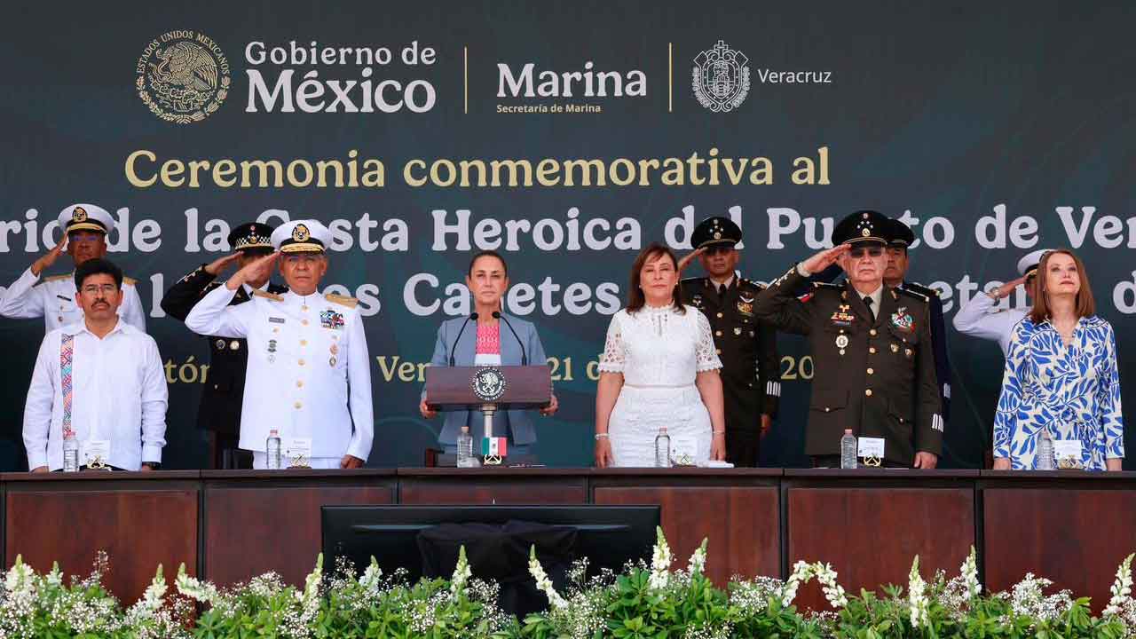 La presidenta Claudia Sheinbaum encabezó la ceremonia por el 112 aniversario de la Defensa del Puerto de Veracruz, donde tomó protesta a 419 cadetes de primer año de la Heroica Escuela Naval Militar y del Centro de Estudios Navales en Ciencias de la Salud, en Alvarado.