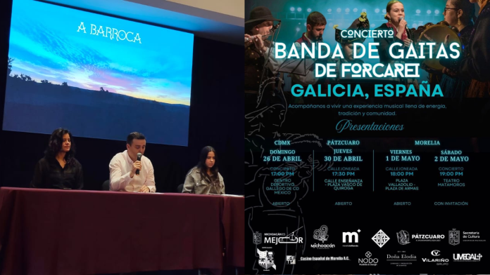 Morelia y Pátzcuaro serán sede por primera vez de la presentación de la Banda de Gaitas de Galicia, España, en la capital del estado tendrán una función principal en el teatro Matamoros, pero también habrá callejoneada y una exhibición previo al encendido de Catedral el sábado dos de mayo, apuntó Alberto Fernández Sánchez, coordinador del evento.