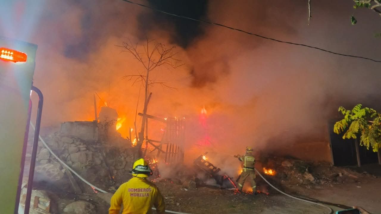 Morelia, Mich.- Viernes 24 de abril de 2026.- Un incendio devastó dos casas de madera en la colonia Cumbres del Quinceo, hecho que únicamente dejó daños materiales, informaron autoridades policiales y de rescate.