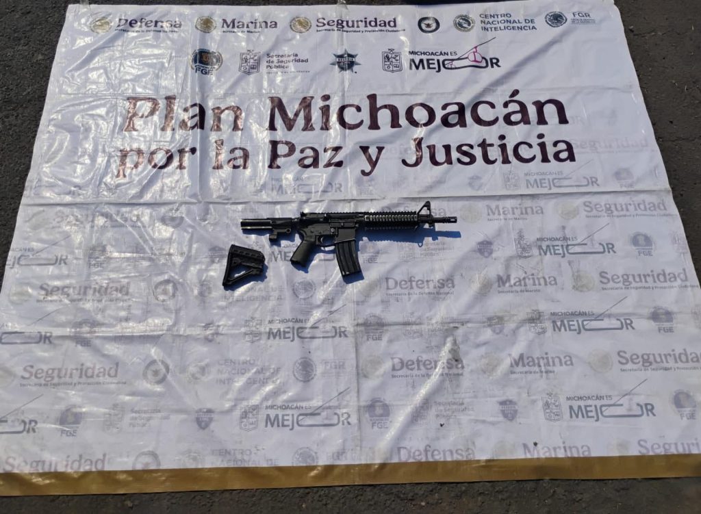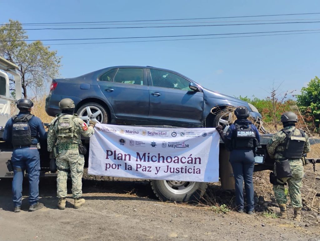 Apatzingán, Mich.- 24 abril de 2026.- Derivado de una serie de enfrentamientos entre civiles armados y elementos de la Base de Operaciones Institucionales, autoridades lograron el aseguramiento de dos vehículos con reporte de robo, un arma larga y la detención de un hombre, en la población de Puertecitos, municipio de Apatzingán.