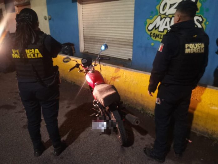 Elementos de la Policía Morelia localizaron y aseguraron una motocicleta con reporte de robo vigente durante labores de investigación y búsqueda realizadas en la colonia Centro de la capital michoacana.